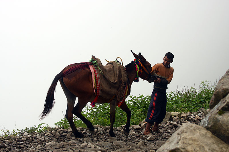 The path is a bit steep on the way to Hem Kund Sahib near Ghangria, Valley of Flowers. Not so scary as the horse was making it to be. It was so foggy, we couldn’t see more than 10 – 12 feet at that time. Perhaps that was what was annoying the horse – then again, maybe it wasn’t his master leading him.